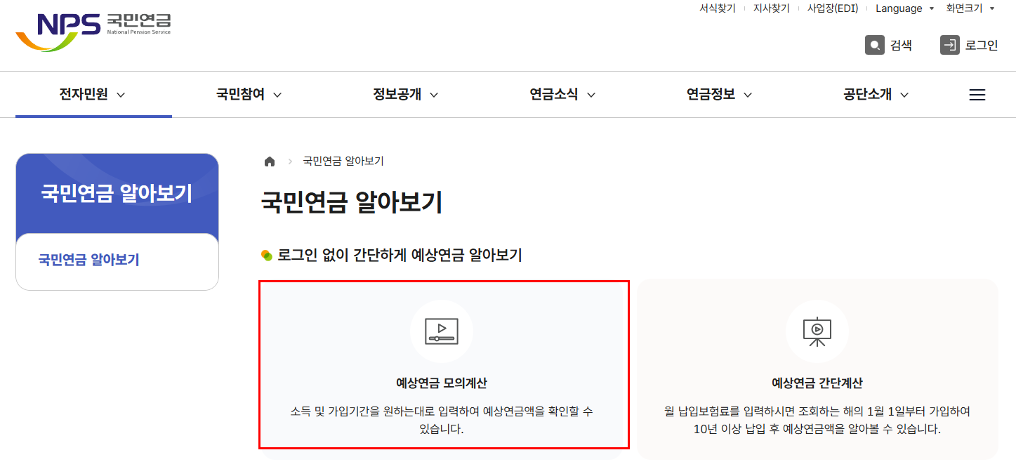 자신이 받을 수 있는 예상 연금액을 간편하게 확인할 수 있습니다.